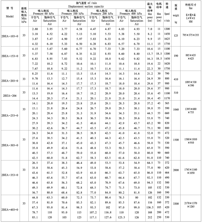 2BEA水環(huán)真空泵 技術(shù)規(guī)格性能表