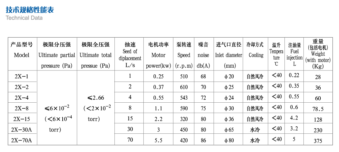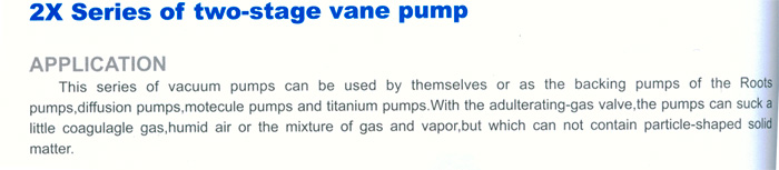 | 2X系列雙級(jí)旋片式真空泵 用途及特點(diǎn): 2X系列雙級(jí)旋片式真空泵是用來(lái)對(duì)密閉容器抽除氣體而獲得真空度的基本設(shè)備。 該系列真空泵可單獨(dú)使用,亦可作為增壓泵、擴(kuò)散泵、分子泵及鈦泵的前級(jí)泵使用。可供真空鍍膜、真空熱處理、真空澆注、電子管、燈泡、熱水瓶等的排氣。醫(yī)療衛(wèi)生和實(shí)驗(yàn)室亦可配供此泵。 注意:該泵不宜抽除含氧過(guò)高、有害、爆炸性、對(duì)金屬有腐蝕性、對(duì)真空油起化學(xué)反應(yīng)、含顆粒塵埃的氣體,也不能用來(lái)把氣體從一個(gè)容器抽送到另外一個(gè)容器作輸送泵。設(shè)有摻氣閥時(shí),可抽送適量可凝性氣體。