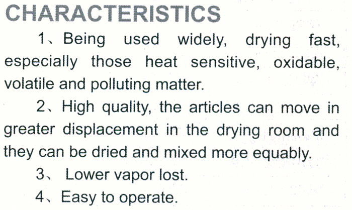 2.產(chǎn)品質(zhì)量高,干燥過(guò)程耙齒不斷正反轉(zhuǎn)動(dòng),被干燥物料攪拌均勻,由于產(chǎn)品粒度細(xì),不需粉碎操作即可包裝。